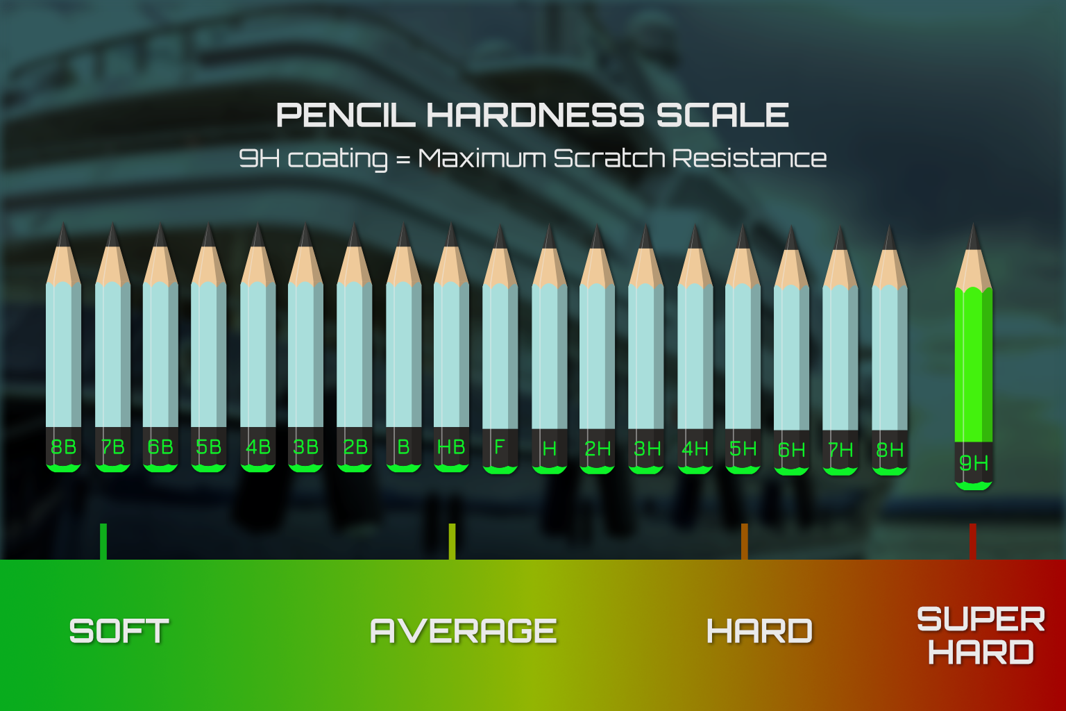 The Pencil Hardness test (ASTM D3363) evaluates a coating’s resistance to scratches by pressing pencils of increasing hardness against the surface. Our coatings achieved the maximum 9H rating, leaving no visible marks even under the hardest pencil. This matters because it proves the coating can withstand daily wear and mechanical stress, keeping boats and surfaces protected, smooth, and looking like new .